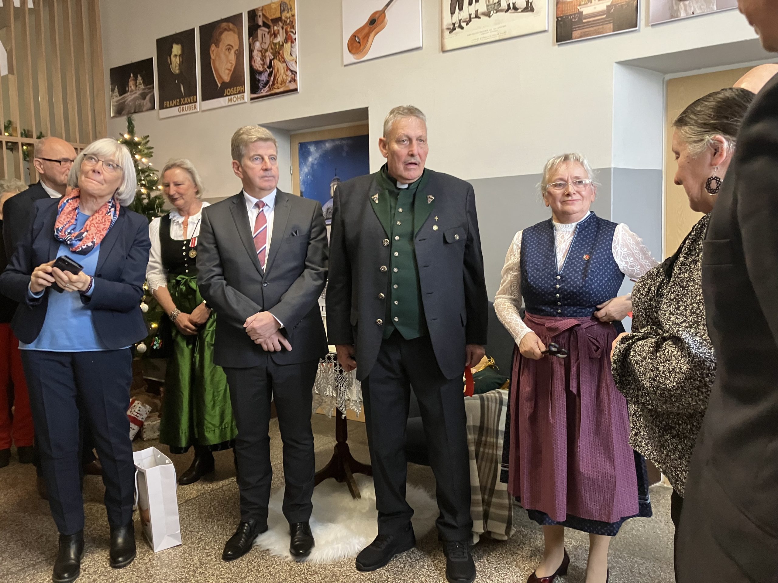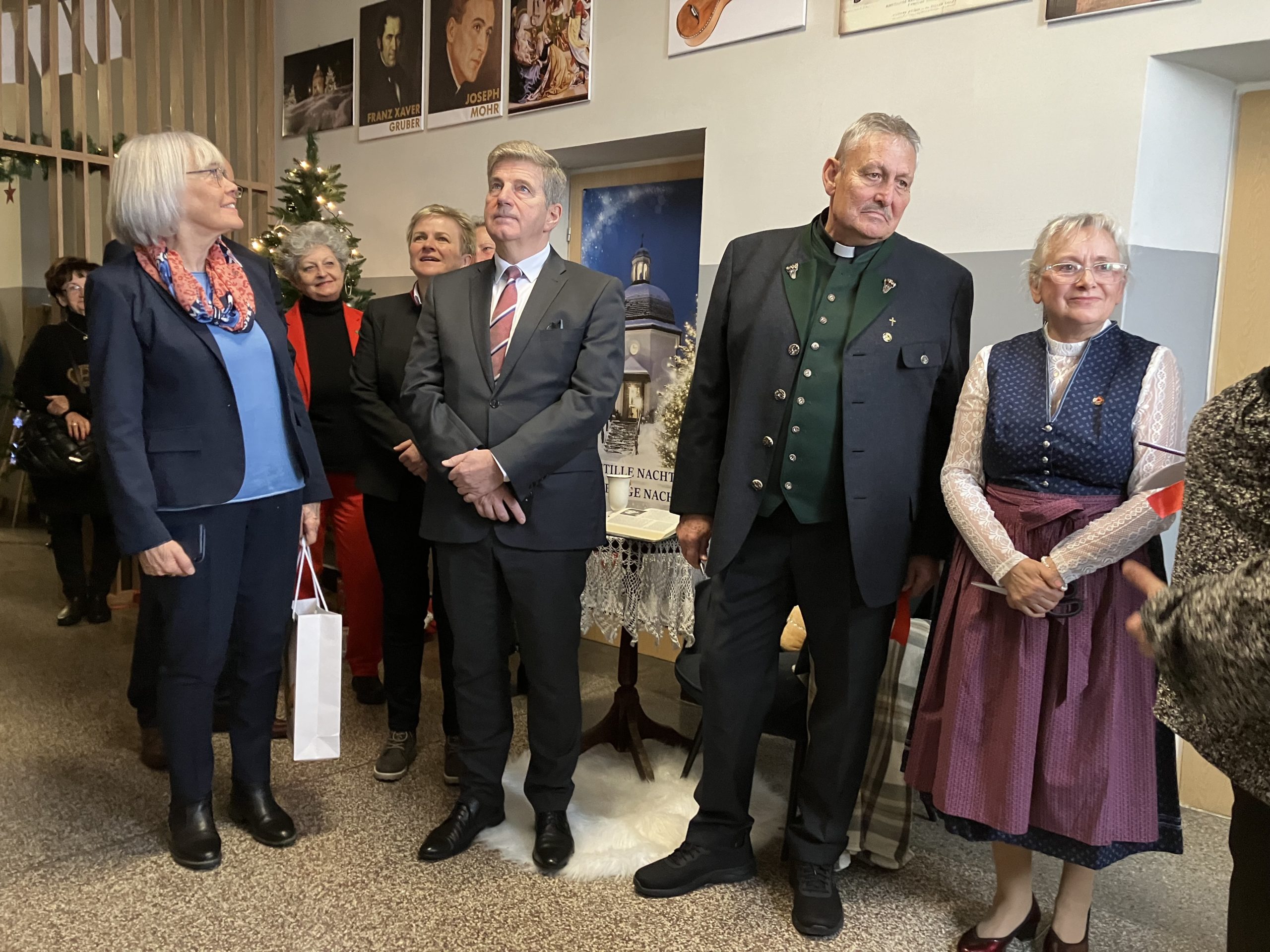 i ks. Bernhard Rohrmoser – członkowie oraz pani Christa Pritz prezes Towarzystwa „Cicha noc”, które ma swoją siedzibę w Oberndorfie, gdzie w noc Bożego Narodzenia 1818 roku została po raz pierwszy zaśpiewana przez ks. Josepha Mohra i Franza Xavera Grubera.