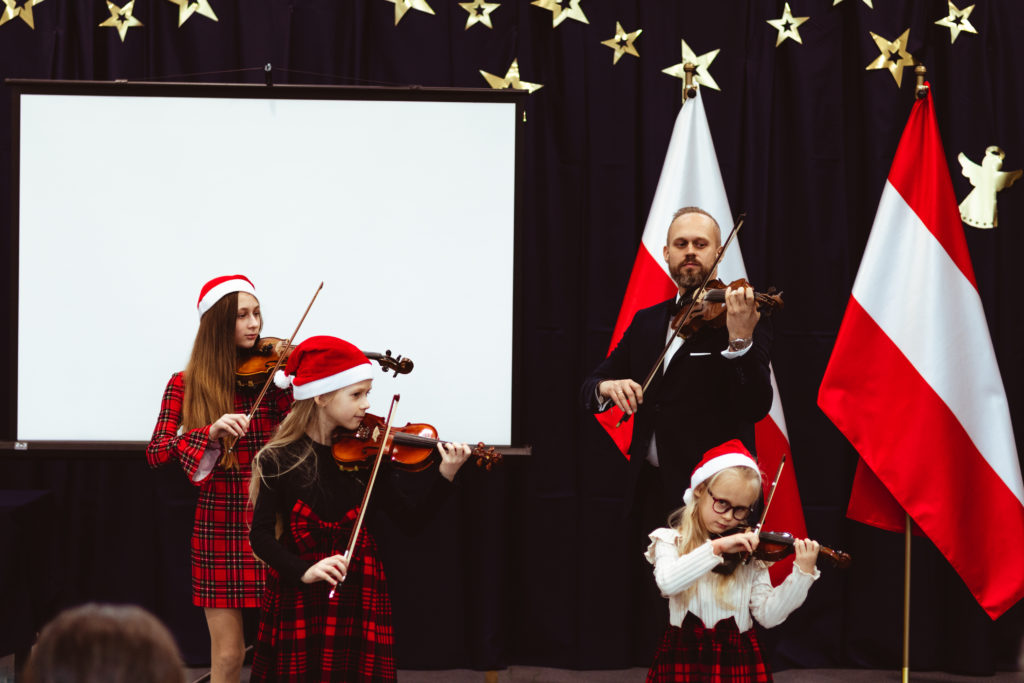 – kolędę „Cicha noc” zagrali na skrzypcach: Julia, Michalina i Oliwia Pacholskie z tatą Jarosławem