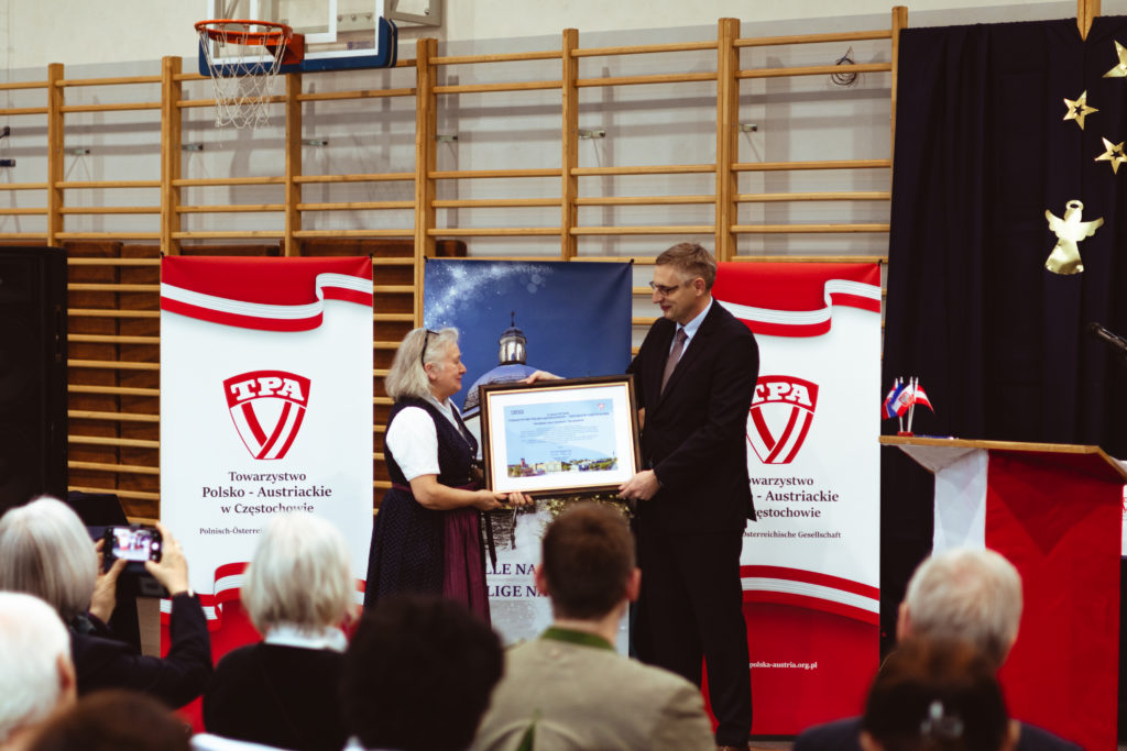 W imieniu Prezydenta Miasta Częstochowy dyplomy uznania osobom zasłużonym dla miasta Częstochowy i dla naszego oddziału TPA, które przez lata wnosiły wielki wkład dla rozkwitu najlepszych relacji między Polską i Austrią w dziedzinach kultury, turystyki i historii wręczył pan Marek Czerwiński – Dyrektor Generalny Urzędu Miasta Częstochowy. A otrzymali je:
