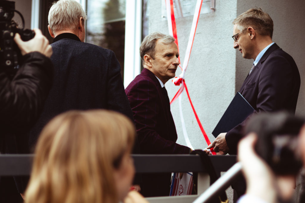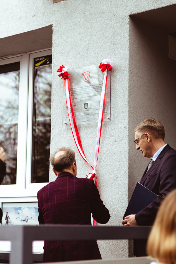 Przed uroczystą galą miało miejsce odsłonięcie tablicy pamiątkowej umieszczonej na fasadzie budynku ZSE w Częstochowie, którego dokonali: